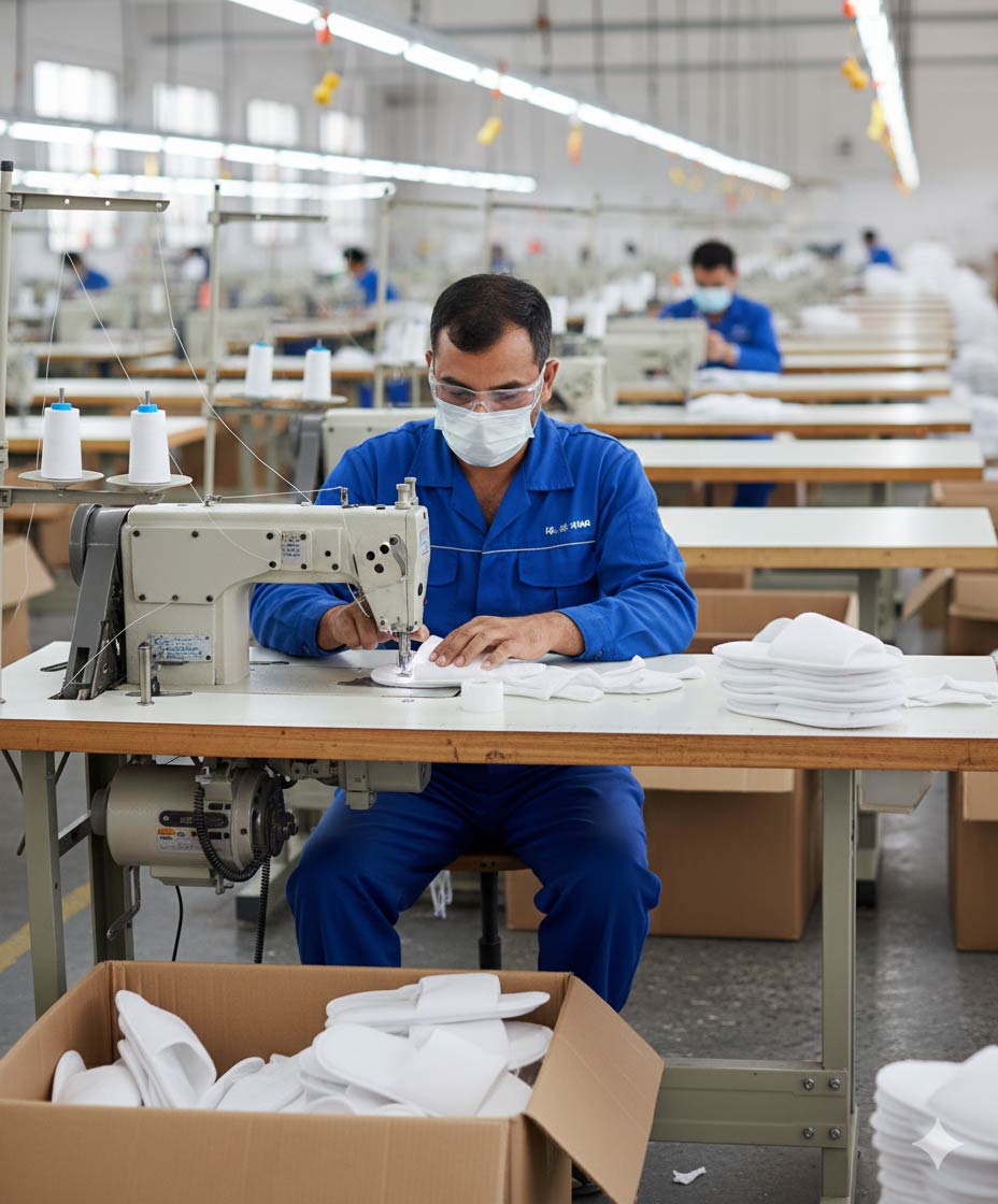 مرحله پایانی شامل بستهبندی دمپاییها است. بستهبندی میتواند به صورت تکتک یا چندتایی انجام شود و معمولاً با ماشینآلات اتوماتیک صورت میگیرد تا محصول آماده ارسال به هتلها یا بازار مصرف باشد. رعایت استانداردهای بستهبندی علاوه بر حفظ کیفیت، جلوهای حرفهای به محصول میدهد و تجربه میهمانان را بهبود میبخشد.