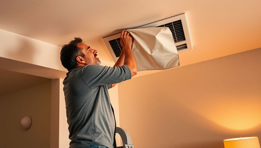 چگونه دریچه کولر را با استفاده از محافظ دریچه کولر را ببندیم؟ چسباندن مسدود کننده دریچه کولر بسیار راحت است، شما می توانید با اندازه گیری ابعاد کانال کولر فوم محافظ دریچه کولر را برش داده و از آن برای پوشش 3 الی 4 دریچه استفاده کنید. بهتر است که ابتدا دریچه را تمیز کنید سپس اقدام به نصب چسب دریچه کولر نمایید. برای اینکار اول با استفاده از جاروبرقی گرد و خاک های موجود را جمع کرده، سپس با دستمال نم دار آن را پاک کنید و شروع به چسباندن محافظ کانال کولر کنید. استفاده از این محافظ بهترین روش برای بستن دریچه کولر به خصوص در فصل سرماست و حرارت داخل منزل را حفظ می کند.